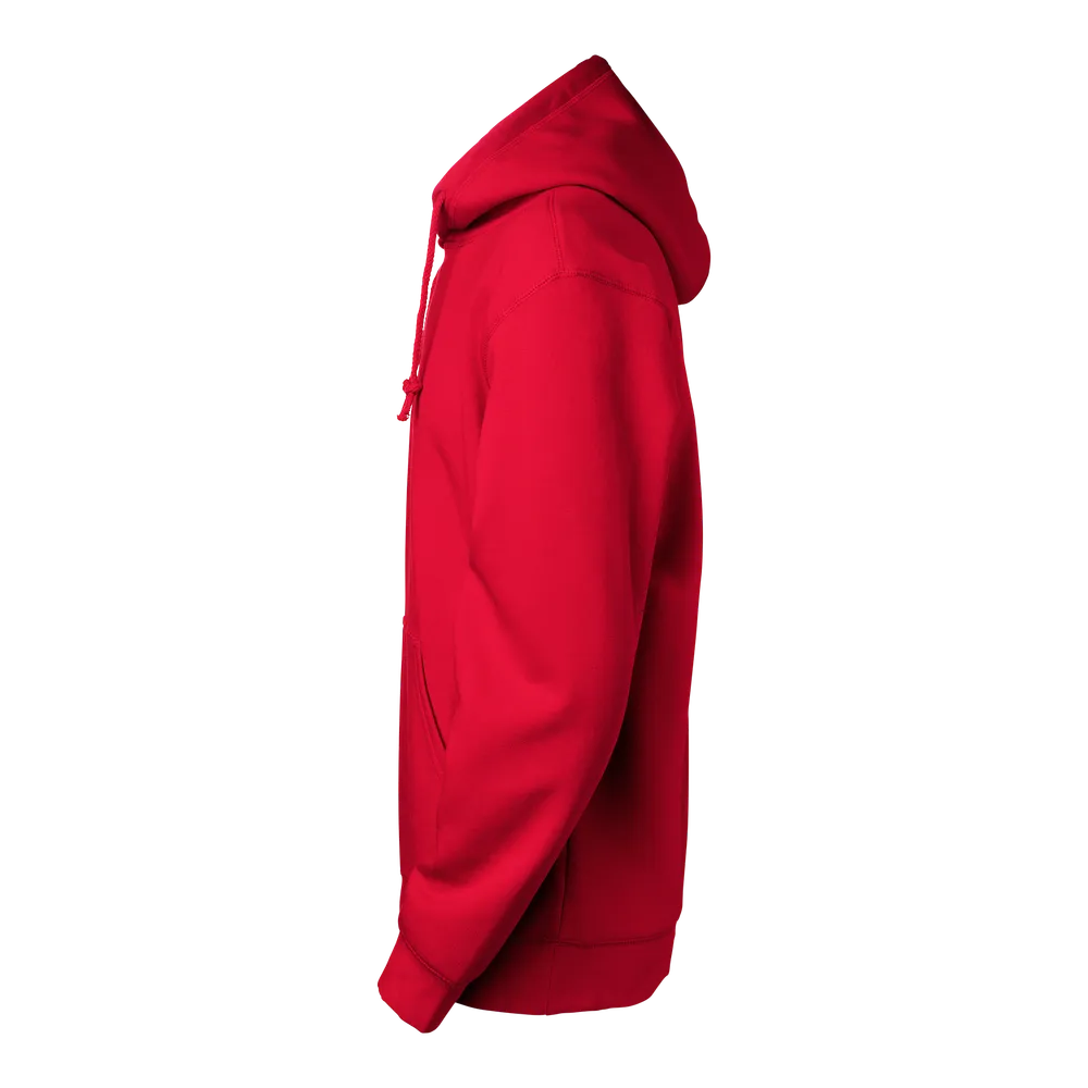 Collegetröja med flatlocksömmar och dubbelt tyglager i huvan och genomgående ficka på magen.