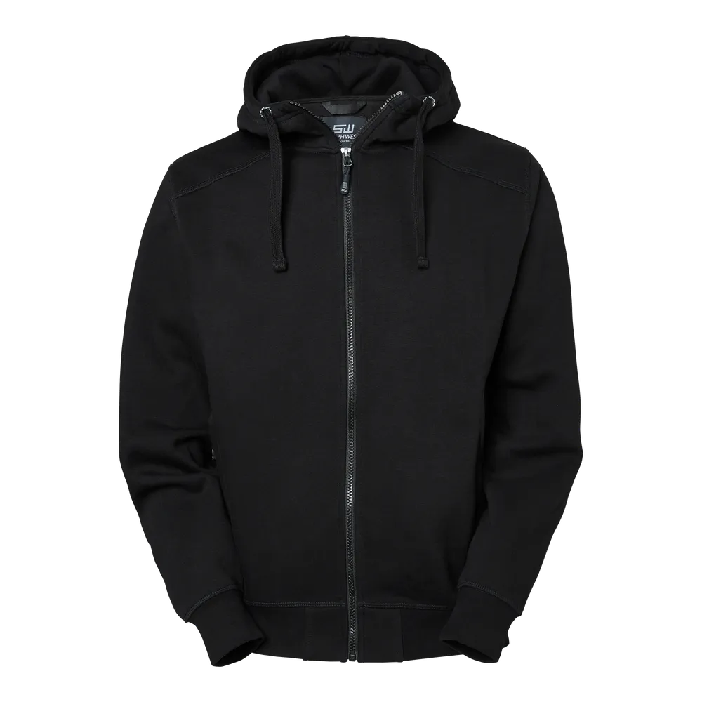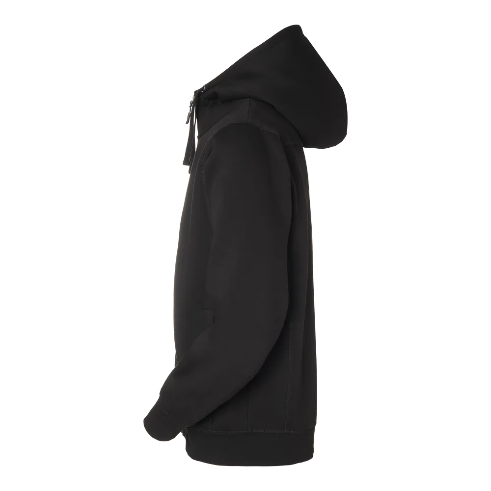 Collegejacka med borstad insida och avvikande paneler i sidan. Två rymliga frontfickor med dragkedja. Jackan har huva med hög hals med dragsko för enkel justering av passform. Elastisk mudd i nederkant och vid ärmslut.